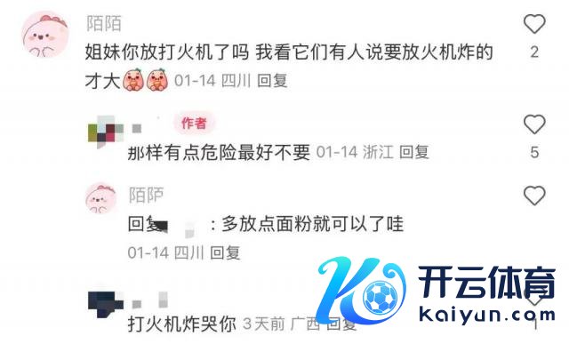 其中,部分帖子点赞已达上万。有网友共享了"二踢脚炸面粉"的拍摄教程:"花炸得多大取决于面粉放了若干",致使还有部分未成年东谈主在拍视频效法。