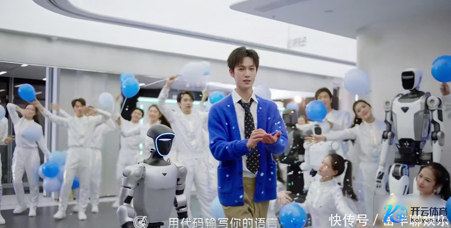 相同,央视的跨年晚会上,李昀锐与机器东说念主一说念跳《NEW BOT》。
