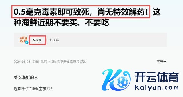 农视网《0.5毫克毒素即可致死世界杯体育,尚无殊效解药!这种海鲜近期不要买、不要吃》2024-05-26